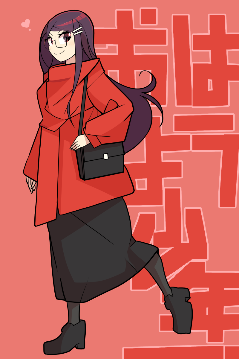 • 黒い長髪、眼鏡、セーター制服。